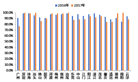 近日,省环境保护厅联合省气象局召开2017年第一季度广东省环境空气质量状况分析会商会。监测数据显示,今年第一季度我省空气质量总体良好,全省空气质量优良率(AQI)平均为92.9%,其中,优占27.1%,良占65.8%。第一季度,珠三角区域9个城市、长三角区域25个城市、京津冀区域13个城市平均优良天数比例分别为90.0%、76.1%、52.1%。一季度全国74个重点城市空气质量排名中,惠州、深圳、珠海入选前十佳。