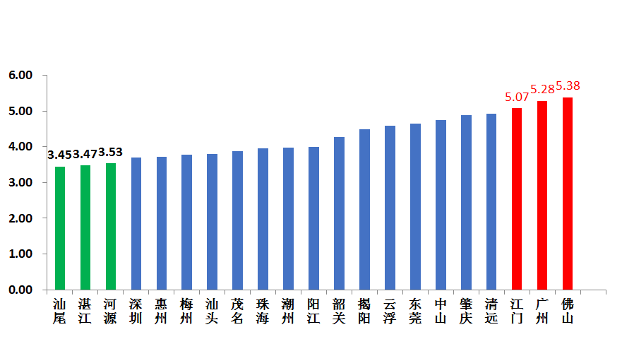根据环境空气质量综合指数排名,我省各地级以上市排名依次为:汕尾、湛江、河源、深圳、惠州、梅州、汕头、茂名、珠海、潮州、阳江、韶关、揭阳、云浮、东莞、中山、肇庆、清远、江门、广州、佛山。